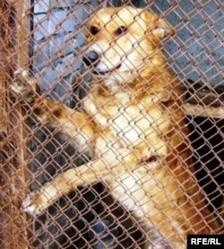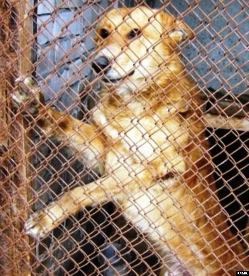 Пойманная собака в клетке компании "Жасыл-Тараз".