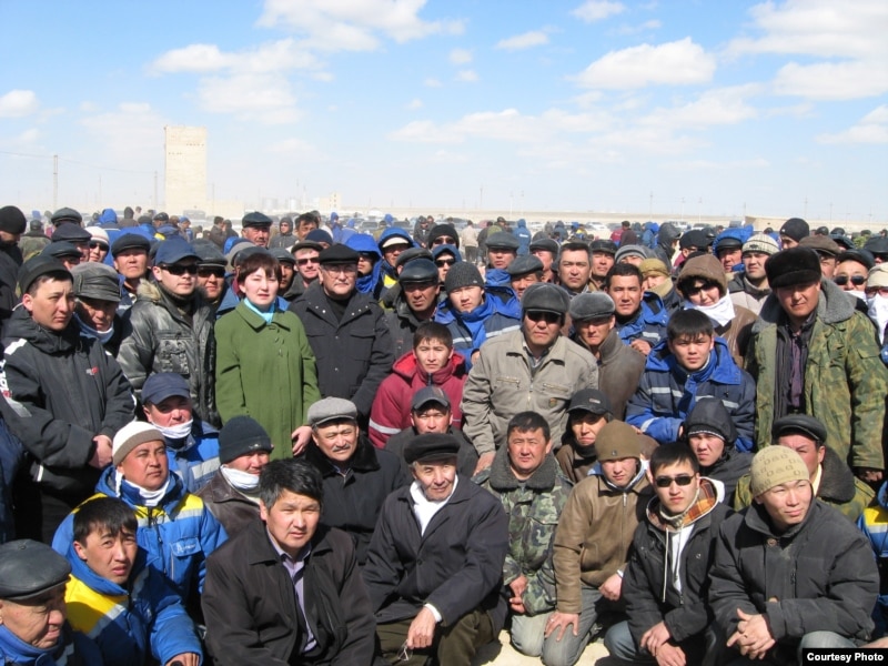 Забастовка сотен нефтяников в Жанаозене. 20 марта 2009 года.