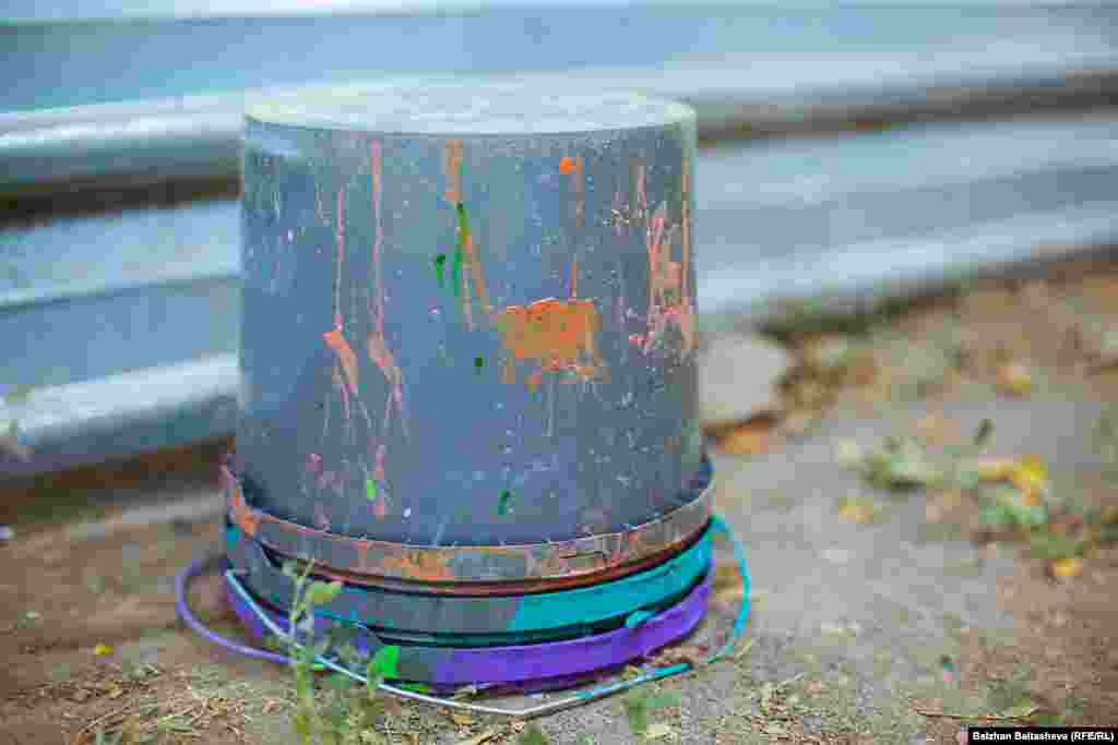 Марина Зуми раскрасила наружные стены Школы изобразительного искусства и технического дизайна имени А. Кастеева. Фото Балжан Балташевой, фотографа Казахской редакции Азаттыка. 21 июля 2015 года.