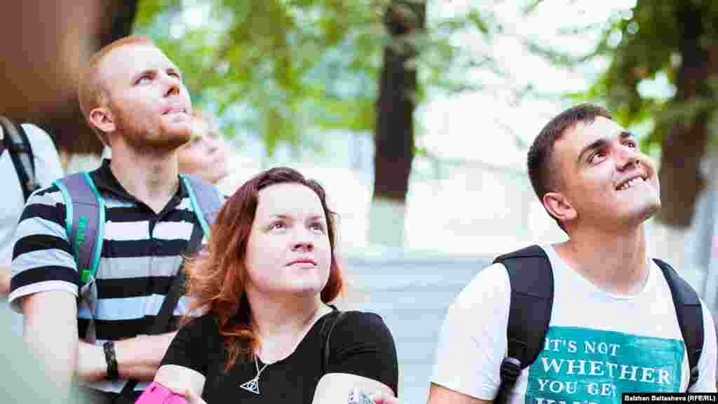 Открытие стрит-арт-проекта с участием аргентинского художника Марины Зуми. Школа искусства и дизайна имени А. Кастеева в Алматы. Фото Балжан Балташевой, фотографа Казахской редакции Азаттыка. 21 июля 2015 года.