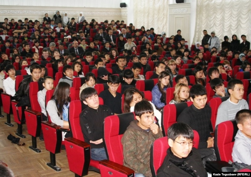 Cтуденты Казахского национального технического университета слушают выступления на собрании о «вреде религиозных сект». Алматы, 8 октября 2010 года.