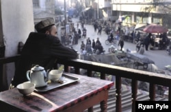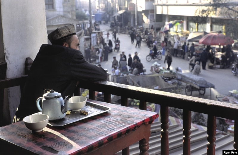 Уйгур смотрит на базар со второго этажа чайханы. Кашгар, 3 ноября 2006 года. Фото с сайта www.ryanpyle.com .
